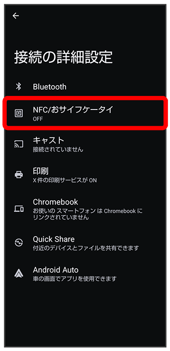 NFC/おサイフケータイ®設定画面で/こちらで検索できます