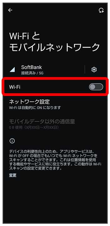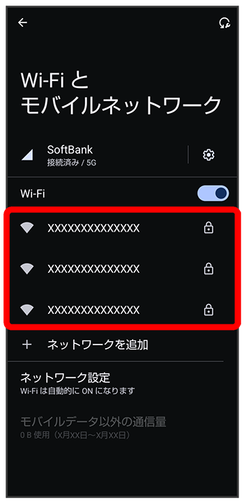 Wi-Fiとモバイルネットワーク画面が表示されます。