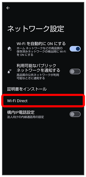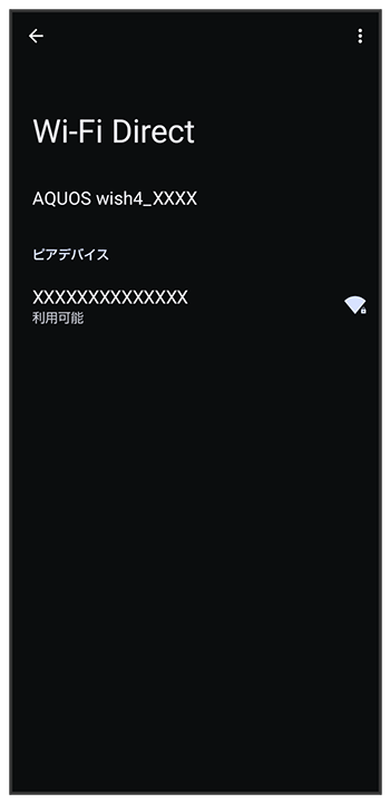 「ピアデバイス」欄に、近くにあるWi-Fi Direct規格対応機器が表示されます。