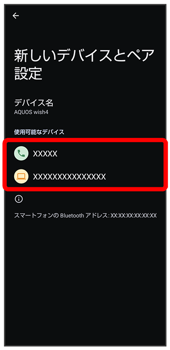 「使用可能なデバイス」欄に近くにあるBluetooth®機器が表示されます。