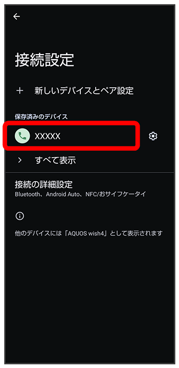 接続設定画面で、ペア設定を解除する機器のこちらで検索できます