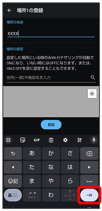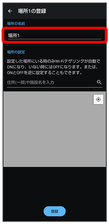 テザリングオート画面で場所の名前欄をタップ場所の名前を入力