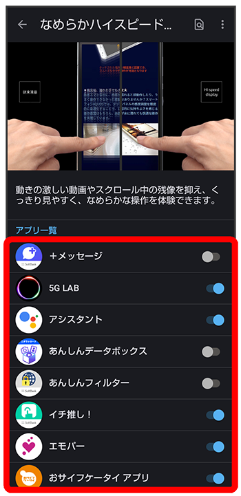 - アプリによっては効果が得られないことがあります。その場合は、設定を無効にしてください。また、電池残量や本体温度によっても、効果が得られない場合があります。