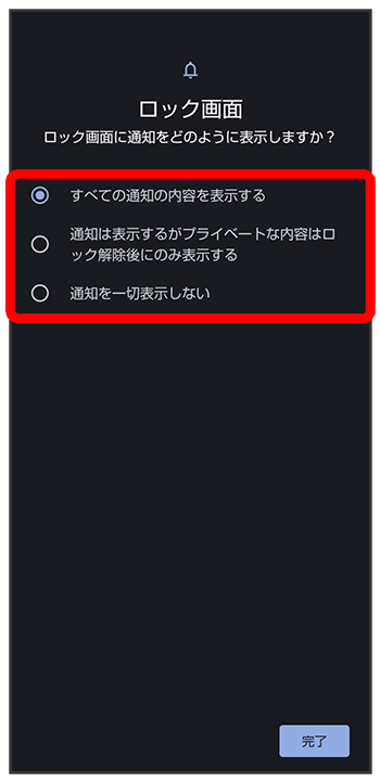 - 変更前の画面ロック解除方法がまたは以外のときは、設定が完了します。
