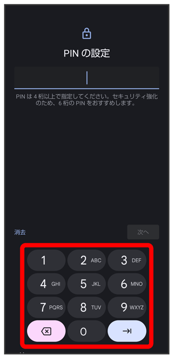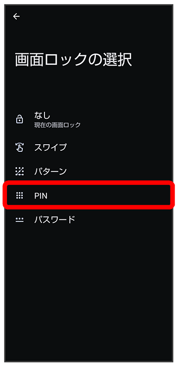 PINで画面ロックを解除するように設定する