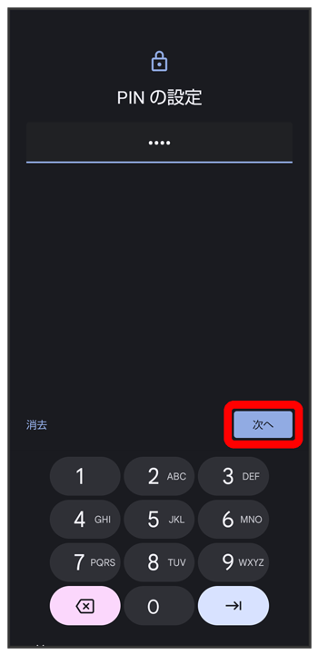 - をタップすると、入力したPINを消去できます。