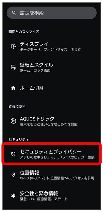 セキュリティとプライバシー画面が表示されます。