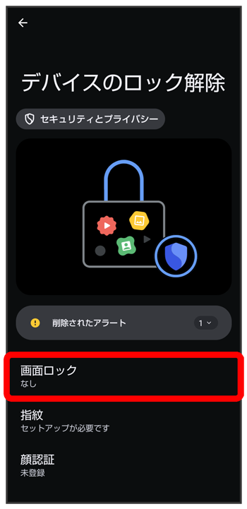 - 変更前の画面ロック解除方法がまたは以外のときは、ロックを解除する操作が必要です。