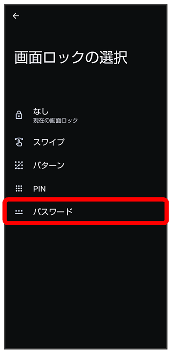 パスワードで画面ロックを解除するように設定する
