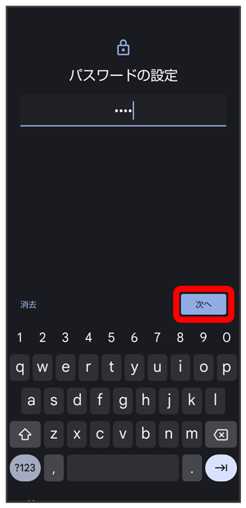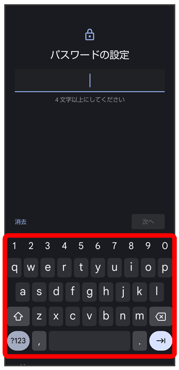 - をタップすると、入力したパスワードを消去できます。