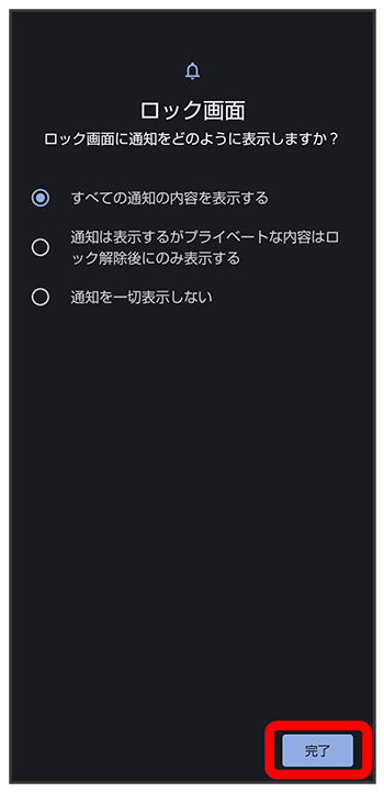 - 変更前の画面ロック解除方法がまたは以外のときは、設定が完了します。