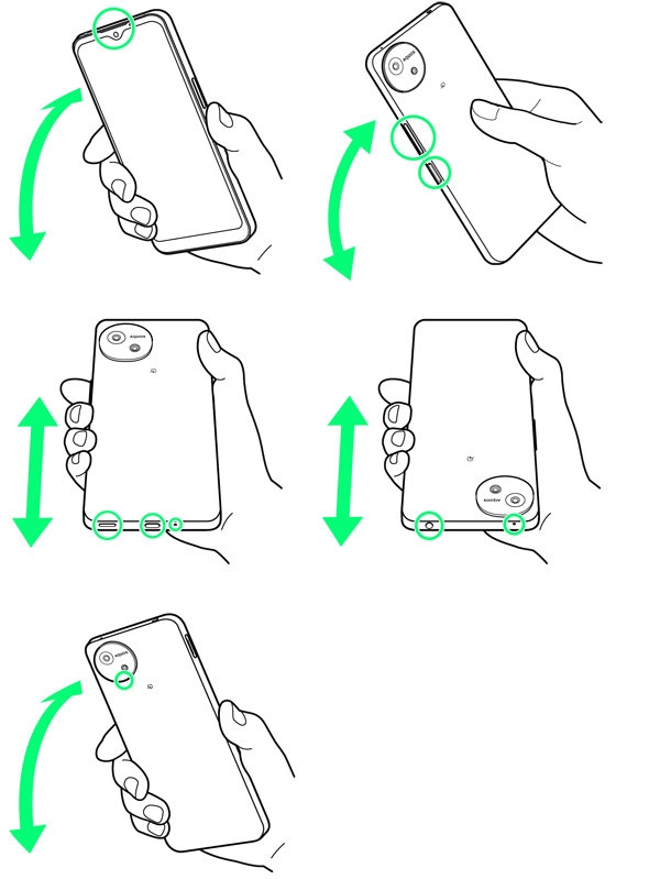 水に濡れたあとは、必ず「受話口」、「音量キー」、「電源キー」、「スピーカー」、「外部接続端子」、「送話口/マイク」、「イヤホンマイク端子」、「マイク」、「カメラ飾り」の水抜きを行ってください。