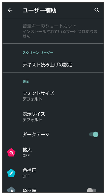| 操作までの時間(ユーザー補助タイムアウト) | 追加され、操作が必要にもかかわらず短い時間しか表示されないメッセージの表示時間を指定できます。 |