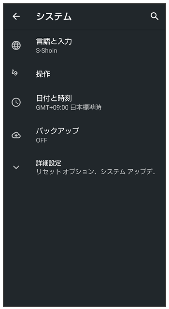 | 詳細設定 | が「デバイス情報」に移動します。 |