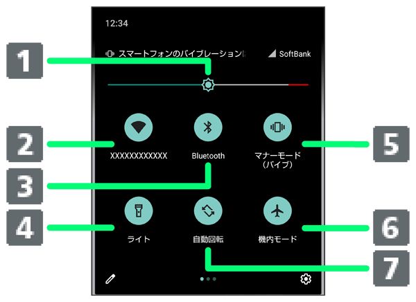 - マナーモード(OFF/バイブ/ミュート)を切り替え