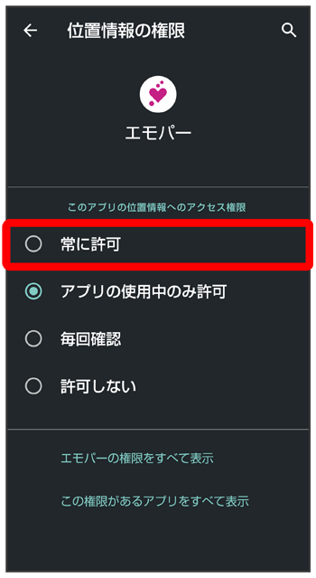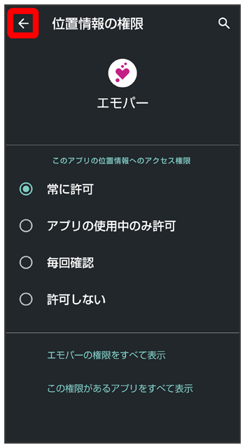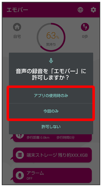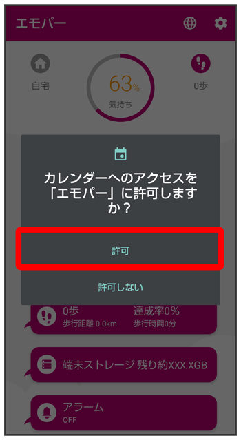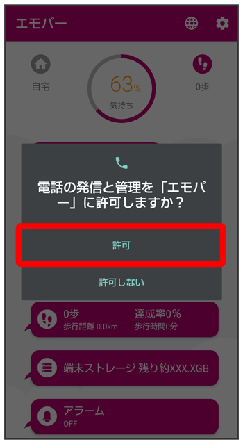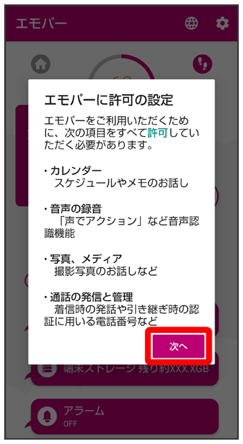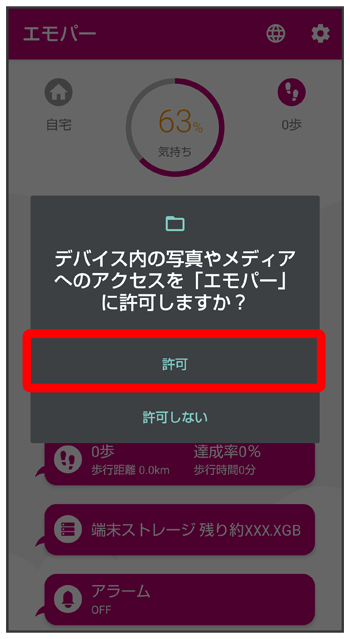 アプリが本機の位置情報やマイク、カメラなどを利用することを許可します。