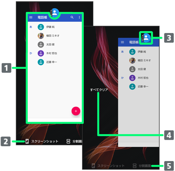 アプリの使用履歴画面でアプリの履歴のアイコンをタップ画面に従って操作- アプリ使用履歴画面で画面に従って操作しても、画面を分割できます。
