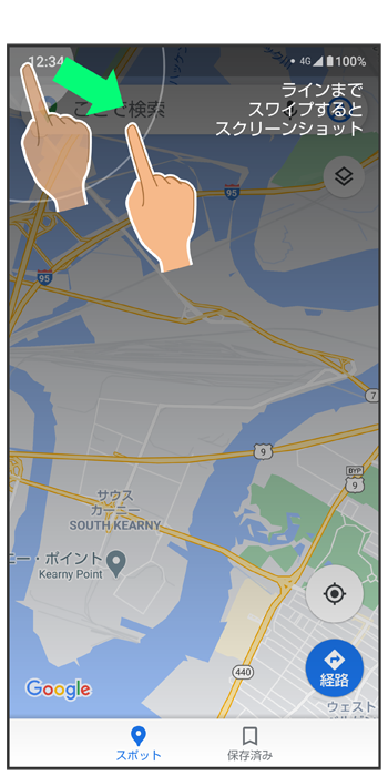 画面の隅から中心に向かってドラッグして、スクリーンショットを撮ることができます。