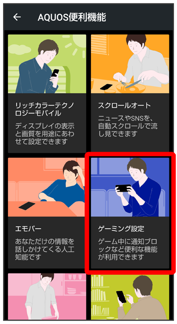 | ゲーム起動中の通知をブロック | ゲーム中に通知をブロックするかどうかなどを設定します。 |