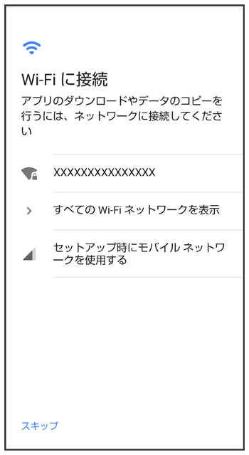 - Wi-Fiの設定を行わないときは、/を選択します。以降は、画面に従って操作してください。