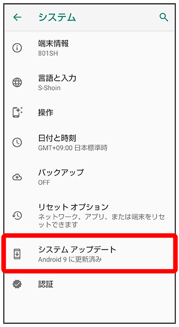 システムアップデートが必要なときは、通知が表示されます。通知をタップし、画面に従って操作してください。通知が表示されない場合などは、次の手順で必要かどうかを確認してアップデートできます。