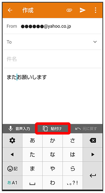 貼り付ける文字をタップ