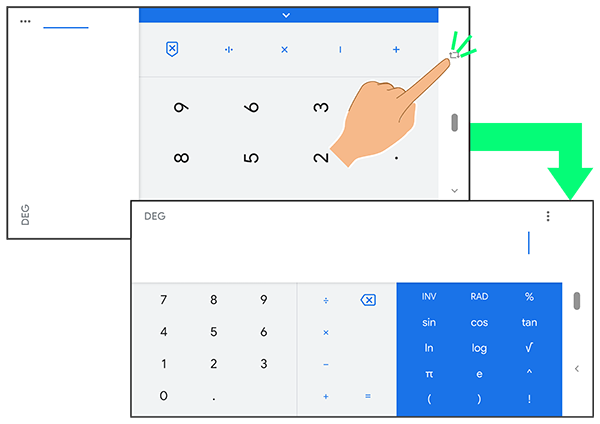 をタップすると、表示画面が横表示に切り替わります。縦表示に切り替えるときは、本機を縦向きに回転させて