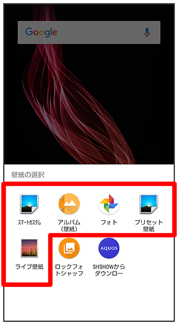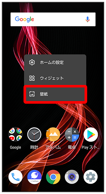 ホーム画面のアイコンがない場所をロングタッチ画面に従って操作こちらで検索できます