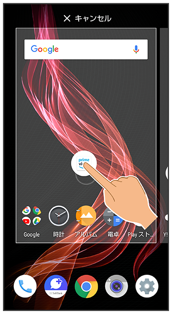 アプリ一覧画面でアプリをロングタッチし、「ホーム画面に追加」までドラッグ