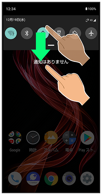 クイック設定パネルからマナーモード(バイブ)に設定する