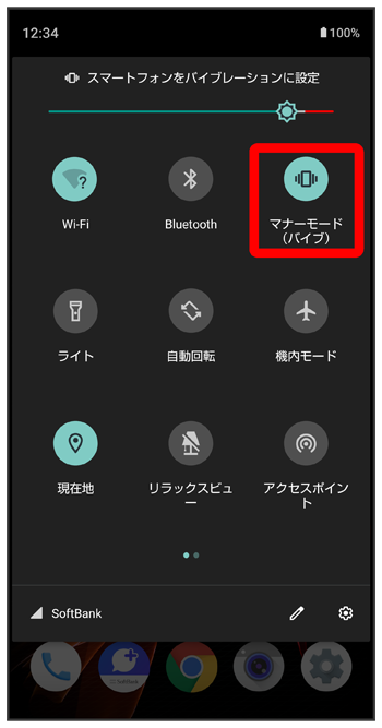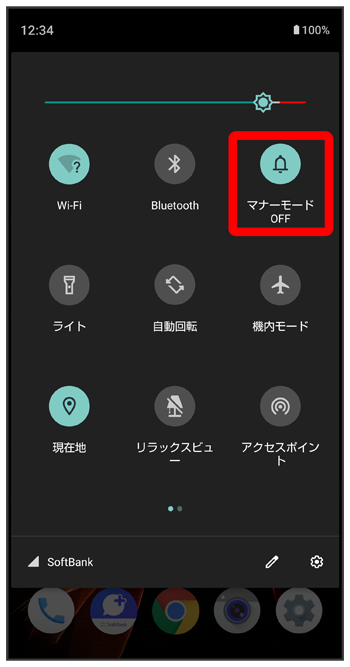 クイック設定パネルからマナーモード(ミュート)に設定する