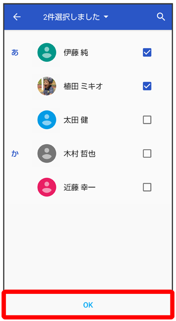 - 複数の連絡先を削除する場合は、続けてほかの対象の連絡先をタップします。