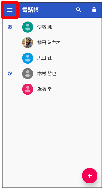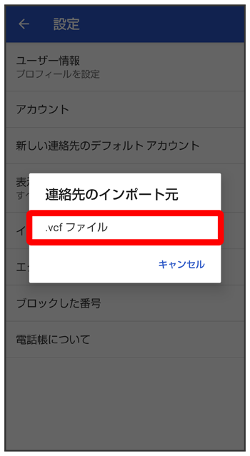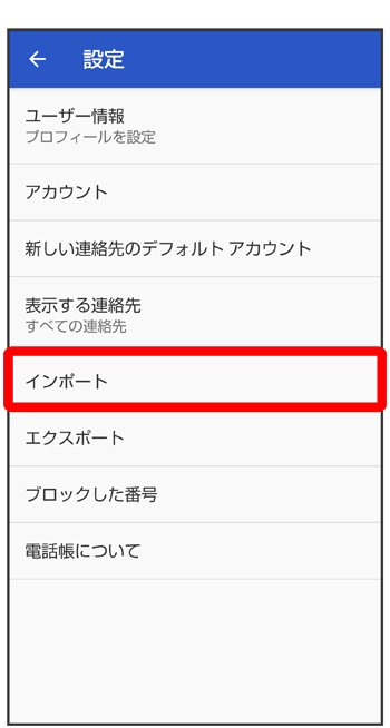 内部ストレージに保存(バックアップ)した電話帳データを読み込み(インポート)できます。