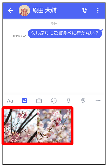 をタップすると画像/動画が添付されたメッセージが送信されます。