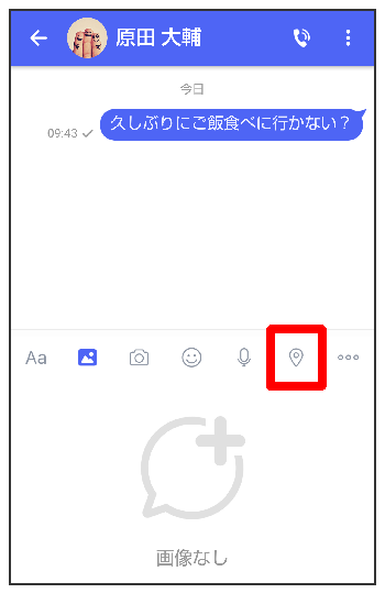 をタップすると位置情報が添付されたメッセージが送信されます。