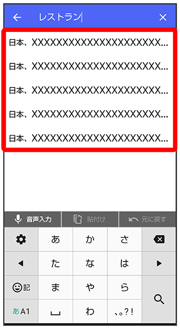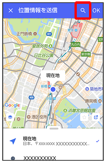 位置情報のキーワードを入力送りたい位置情報をタップ