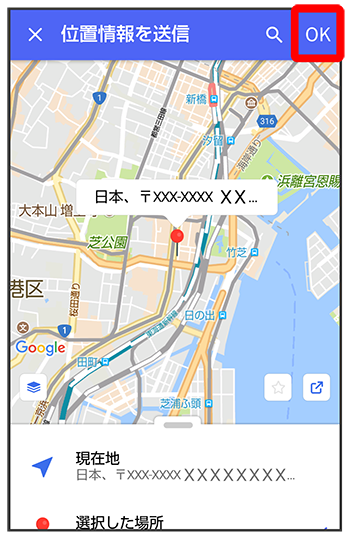をタップすると、現在地情報が送信されます。