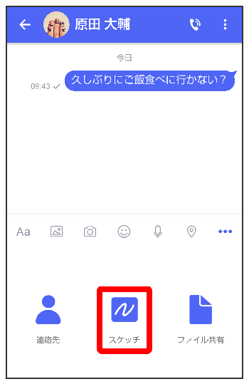 をタップするとスケッチが添付されたメッセージが送信されます。