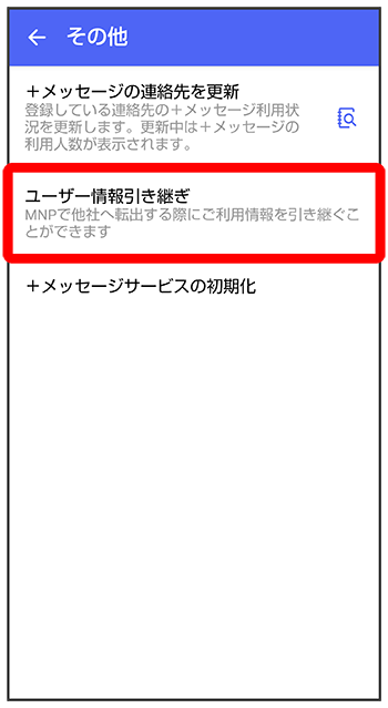 MNP(他社へのお乗り換え)先の事業者でも+メッセージを利用する場合、以下のユーザー情報を引き継ぐことができます。