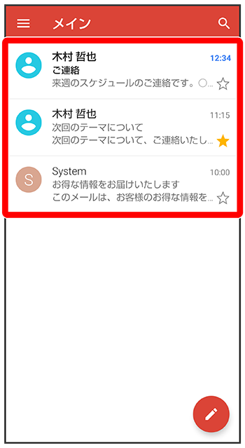 メール一覧画面が表示されます。