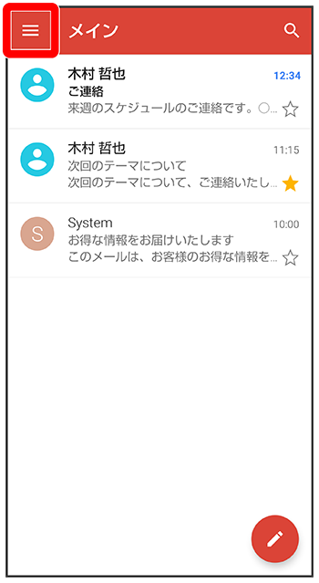 メール一覧画面が表示されます。