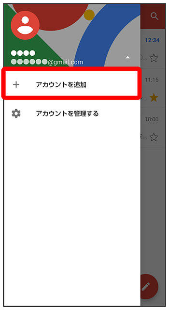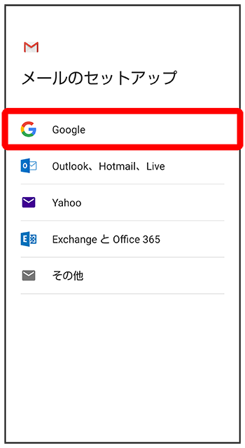 ここでは、Googleのメールアカウント追加を例に説明します。