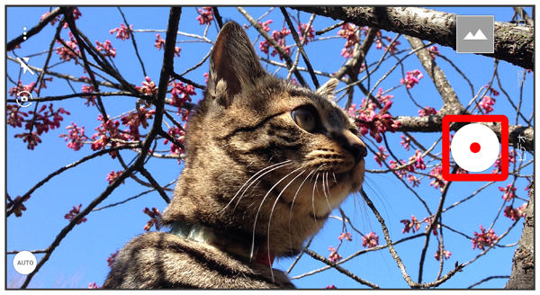 をタップ、または音量Upキー/音量Downキーを押すと写真が撮れます。
