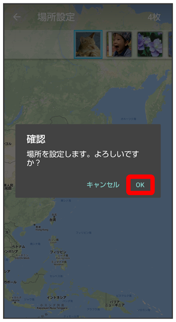 - このあと、フリック/ピンチで設定する場所の地図を表示します。
