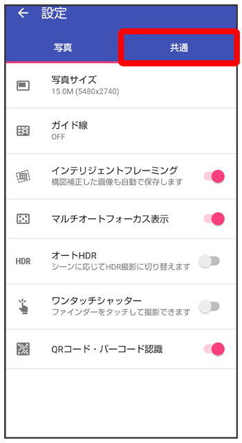 写真/動画撮影共通の設定をする