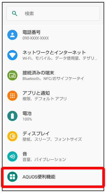 AQUOS便利機能画面が表示されます。
