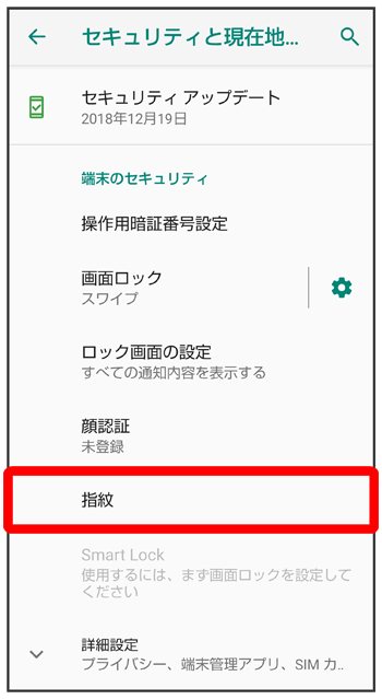 - 指紋認証ができないときの予備の画面ロック解除方法になります。