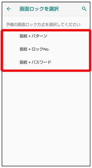予備で設定した画面ロック解除用のパターン/ロックNo.(PIN)/パスワードはお忘れにならないようご注意ください。