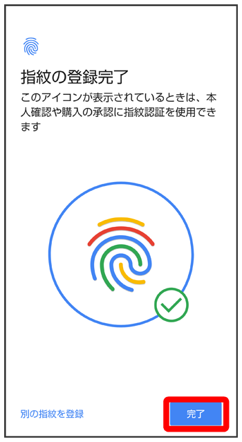 - 指紋の登録完了画面が表示されるまで繰り返してください。