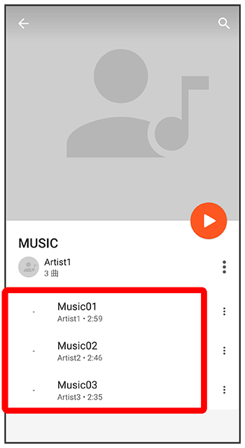 でを選んだときは、項目をタップする必要はありません。 - カテゴリによっては、項目をタップしたあとアルバム名などをタップする必要があります。